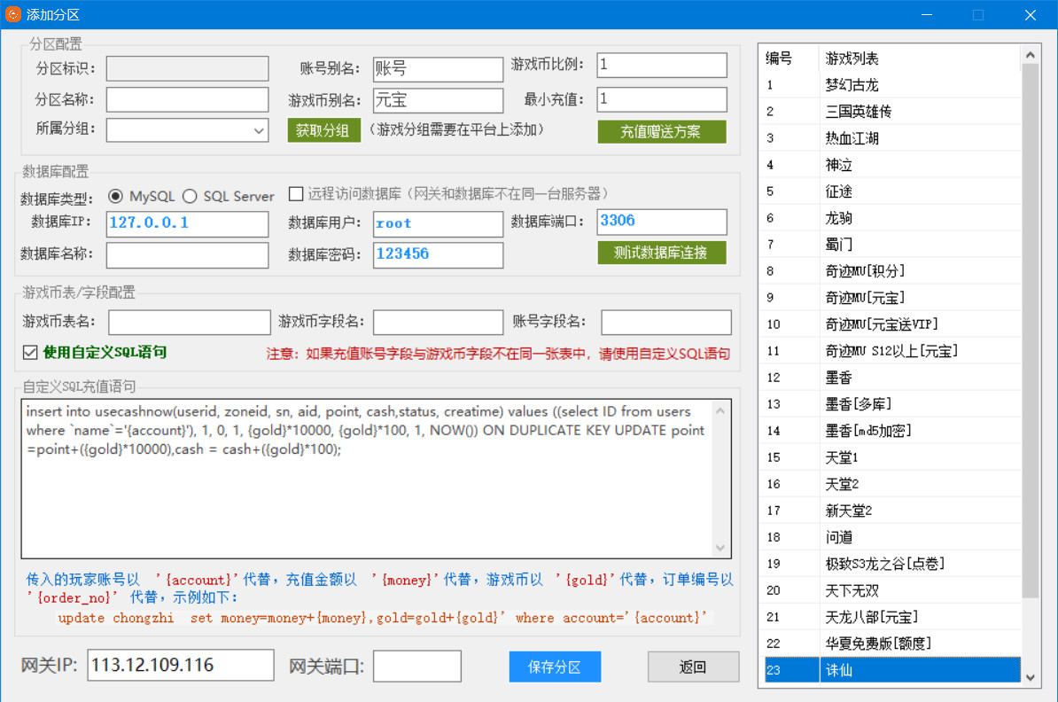 | mysql通用 | 利宝、天易、美廉等自定义游戏网关,简单转换下就可以了 | 点击下载 |