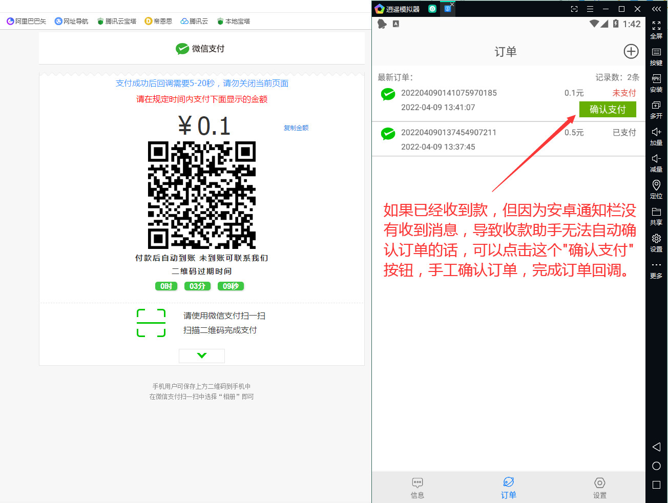 3、收款助手APP新增功能,在安卓助手APP上手工确认订单的支付状态